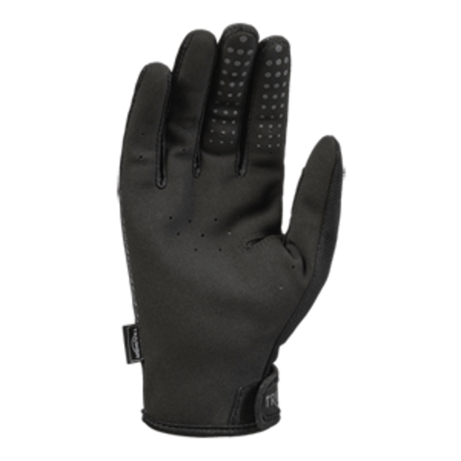 An extremely lightweight and price sensitive glove designed for off-road riding. Constructed from breathable fabrics, with laser-cut ventilation at palm. Featuring silicone grip print to fingers and thumb overlay for improved grip and durability. This product is not intended to offer protection against injury and is not consideRed to be ‘personal protective equipment’ as defined in or within the scope of the Regulation (EU) 2016/425 regarding Personal Protective Equipment.